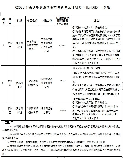 4月7日,罗湖区城市更新单元计划第一批计划公布。