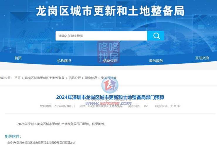 近日,龙岗公布了区土地整备事务中心部门等的预算。