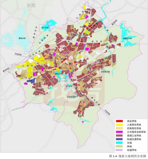 横岗园山街道现状建成度高,已开发利用的建设用地达29平方公里,约占总用地比例的42%。横岗园山是典型的工业重镇,现状工业用地占总建设用地的42.1%。