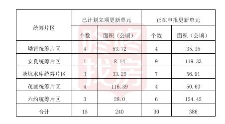 ② 正在申报的更新单元32个,拆除重建范围约286.4公顷
