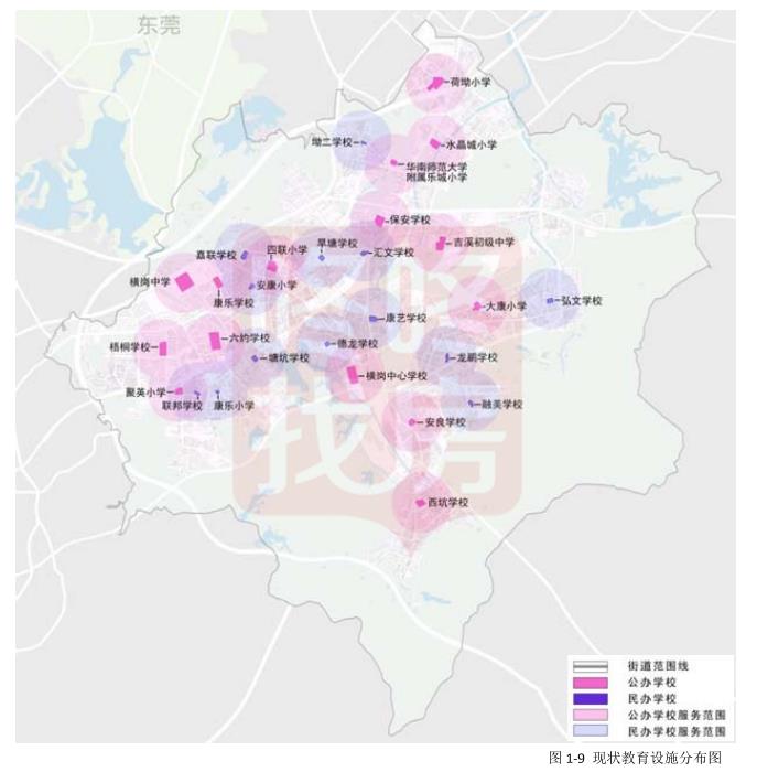 研究范用内现状共有学校27所,公办学校14所,其中,九年制学校5所,小学8所,初中1所,民办中小学13所,其中九年制学校9所,小学4所。