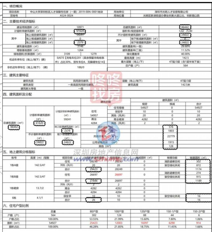 中山大学深圳校区人才保障性住房(一期)名为“安居澜庭”,此次变更1栋、6栋部分户型面积;1栋、6栋总建面86442㎡,总户数564。