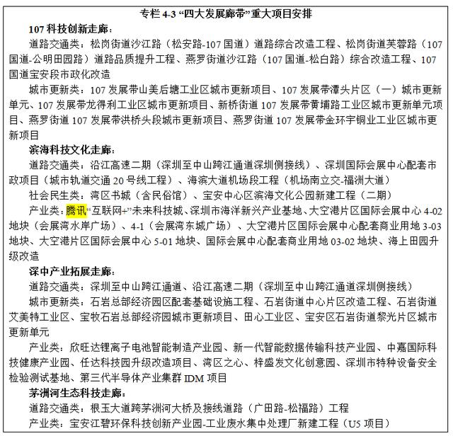 如果非要选一个最重要的项目,那必定是腾讯“互联网+未来科技城”,在文件中被提到5次。