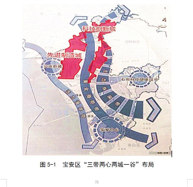 围绕宝安中心区、空港新城、空铁枢纽三大发展核心片区,对接国际建设标准,充分发挥重大项目的带动引领作用,完善城市功能,建设“滨海城市新中心”“西部城市中心”“空铁门户枢纽”,着力发展成为带动全区高品质创新发展的引领区。(文件原表述截取)