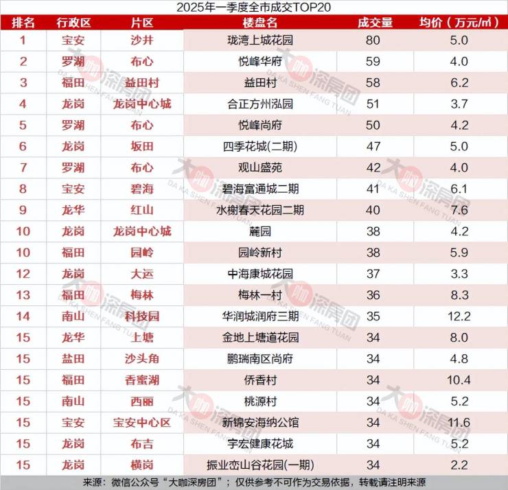 深圳一季度成交曝光,目前哪些小区最好卖?