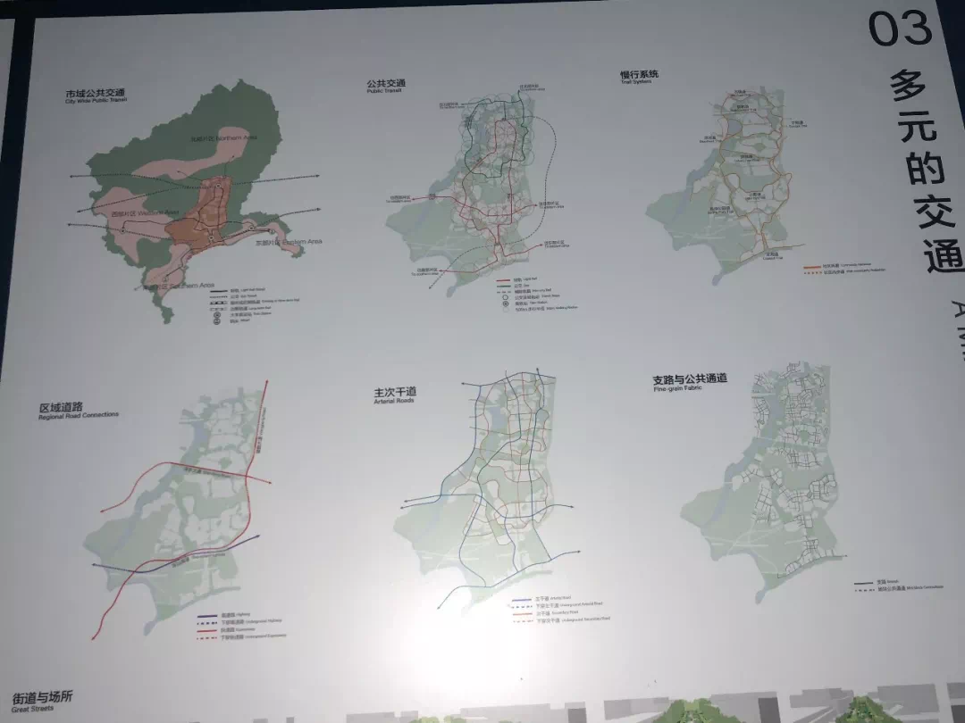 在这个思路中,可以看到交通线及站点建设是串联起各个建设阶段的一个线索。亦即,未来的区域核心将会随着深汕北站、南站——城市轻轨——公交线路这样的建设而逐渐渲染开来,最终达到中心区全面建设的效果。因而,交通线是该份规划中的“重头戏份”:在规划中,亦可看到有关区域公共交通、主次干道、慢行系统、支路与公共通道等的布局,将打造出完善便利的交通路网。