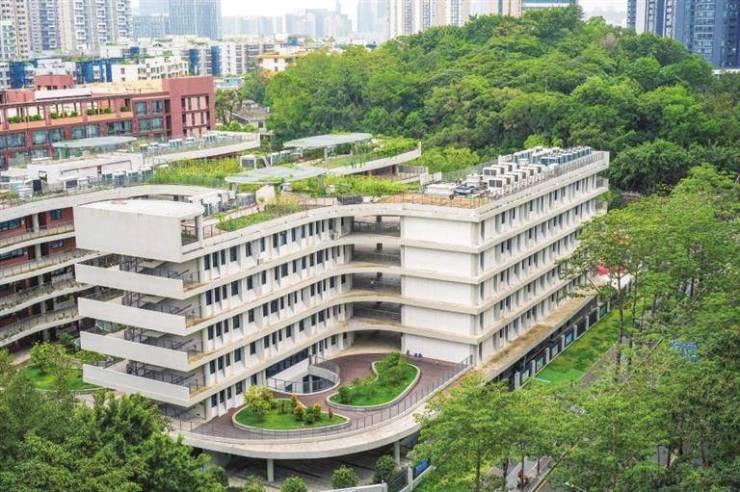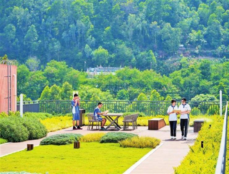 华中师范大学龙岗附属中学的楼顶花园充分利用现有的教学楼屋顶与垂直空间,借鉴了国际流行的低碳和人性化设计理念,植入户外自然课程功能,是一座安全舒适、充满趣味、寓教于乐的教育生态体验乐园,实现了人与环境和自然的和谐共生。