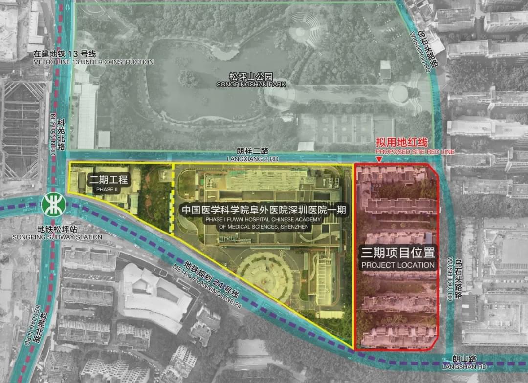 三期项目总投资185165万元。项目位于南山区科技园北区朗山路,规划床位850张,建筑面积185165㎡。主要建设内容包括:七项基本设施用房、健康体检用房、夜间值班宿舍、架空层、风雨连廊、地下停车库、公共交通接驳设施。