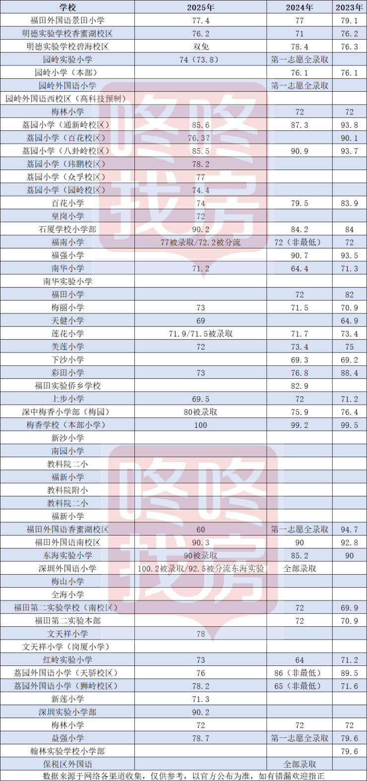 2025深圳各区小一初一积分线汇总!有学校积分跳涨?
