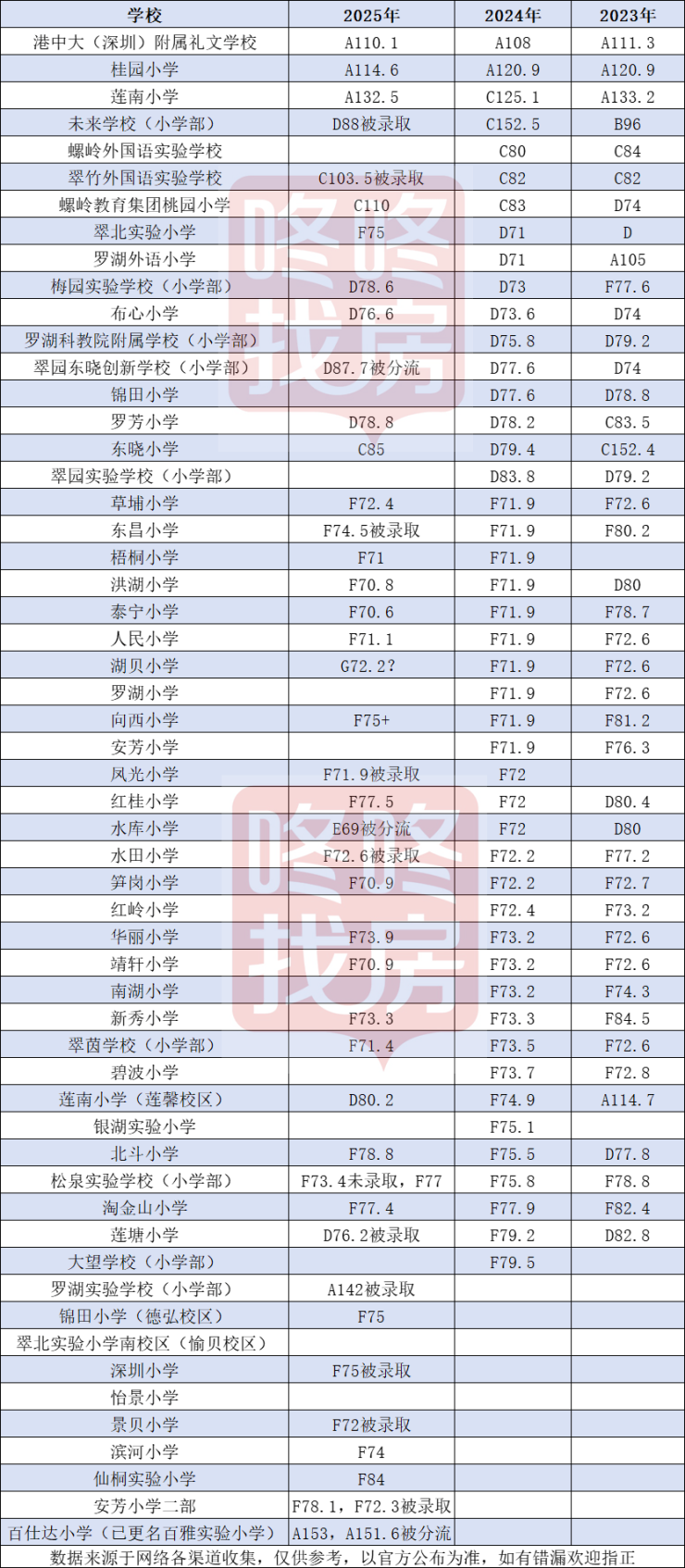 深圳各区小一初一录取分数线已经陆续出来了,在这整理了福田区、南山区、罗湖区等8区的小一初一录取情况。通过整理可以发现,今年的录取情况(以下数据均来自网络收集,如有缺漏,欢迎指正):