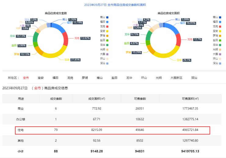 9月27日新房住宅共网签79套。宝安22套;福田12套;龙岗11套;罗湖8套;南山1套;盐田4套;龙华8套;坪山7套;光明3套;大鹏0套;深汕3套。