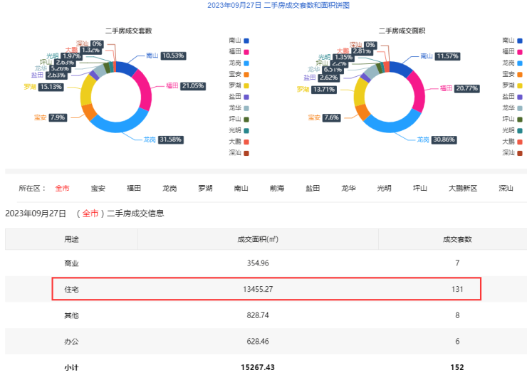 9月27日二手房住宅网签131套。宝安11套;福田26套;龙岗43套;罗湖19套;南山15套;盐田4套;龙华6套;光明1套;坪山4套;大鹏2套。