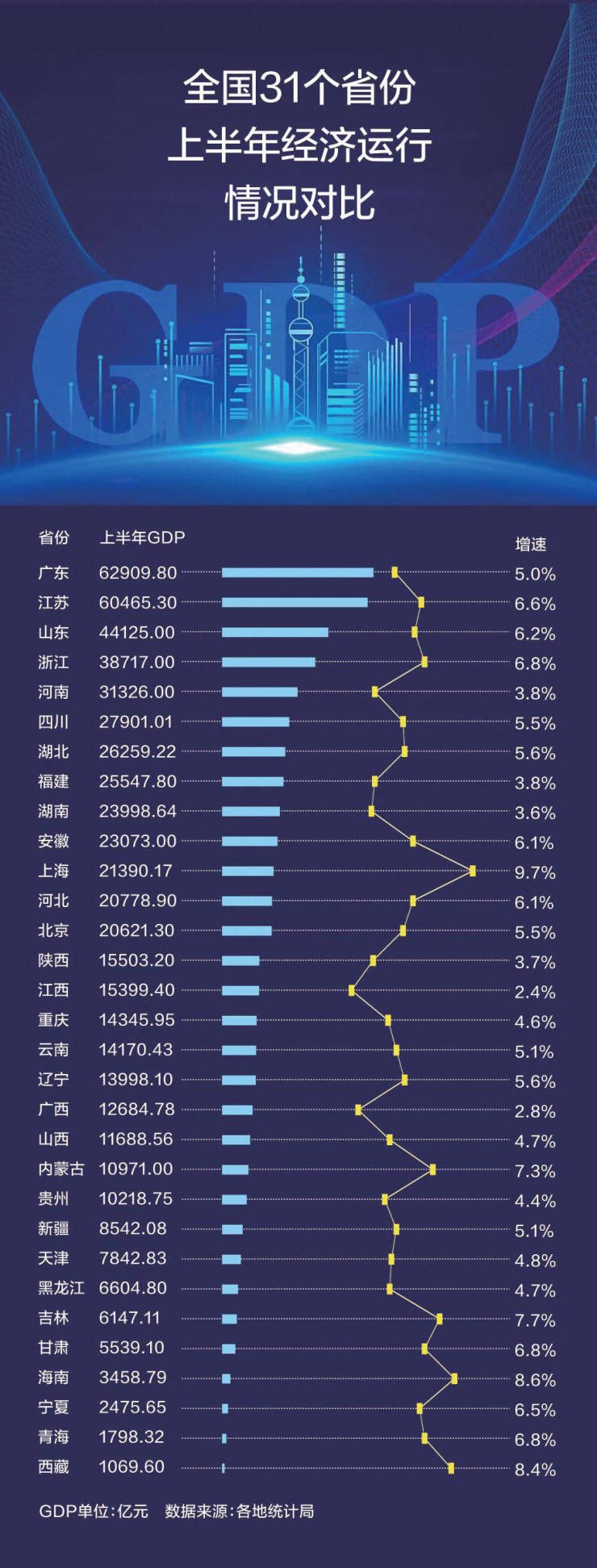 31省份上半年GDP成绩单全部出炉 粤苏超6万亿 15省份增速跑赢“全国线”