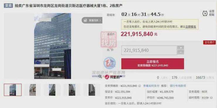 位于龙岗的贝斯达医疗器械大厦1栋、2栋房产进入变卖环节。