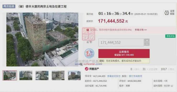 另外,该企业名下还有“停工项目”德丰大厦也计划在5月21日拍卖,起始价1.71亿。