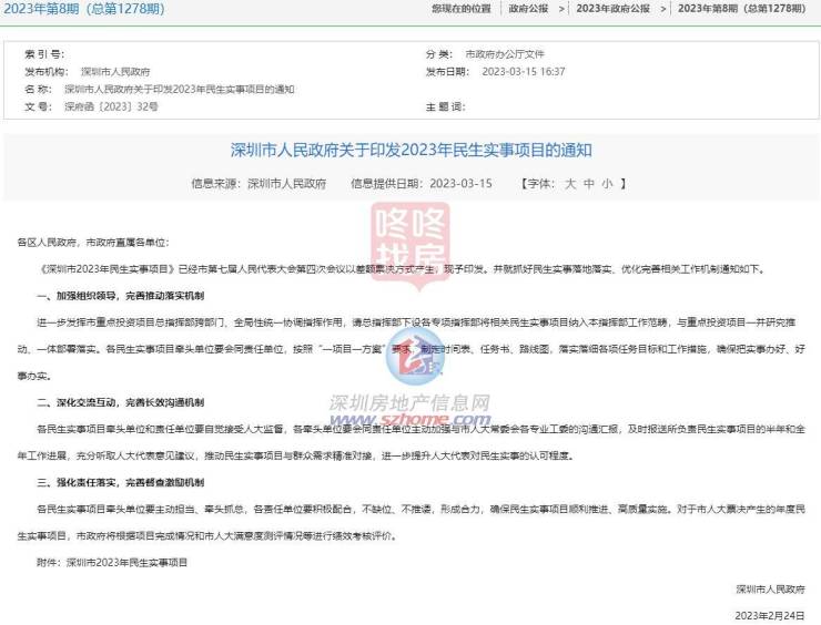 近日,深圳市人民政府印发《2023年民生实事项目》。