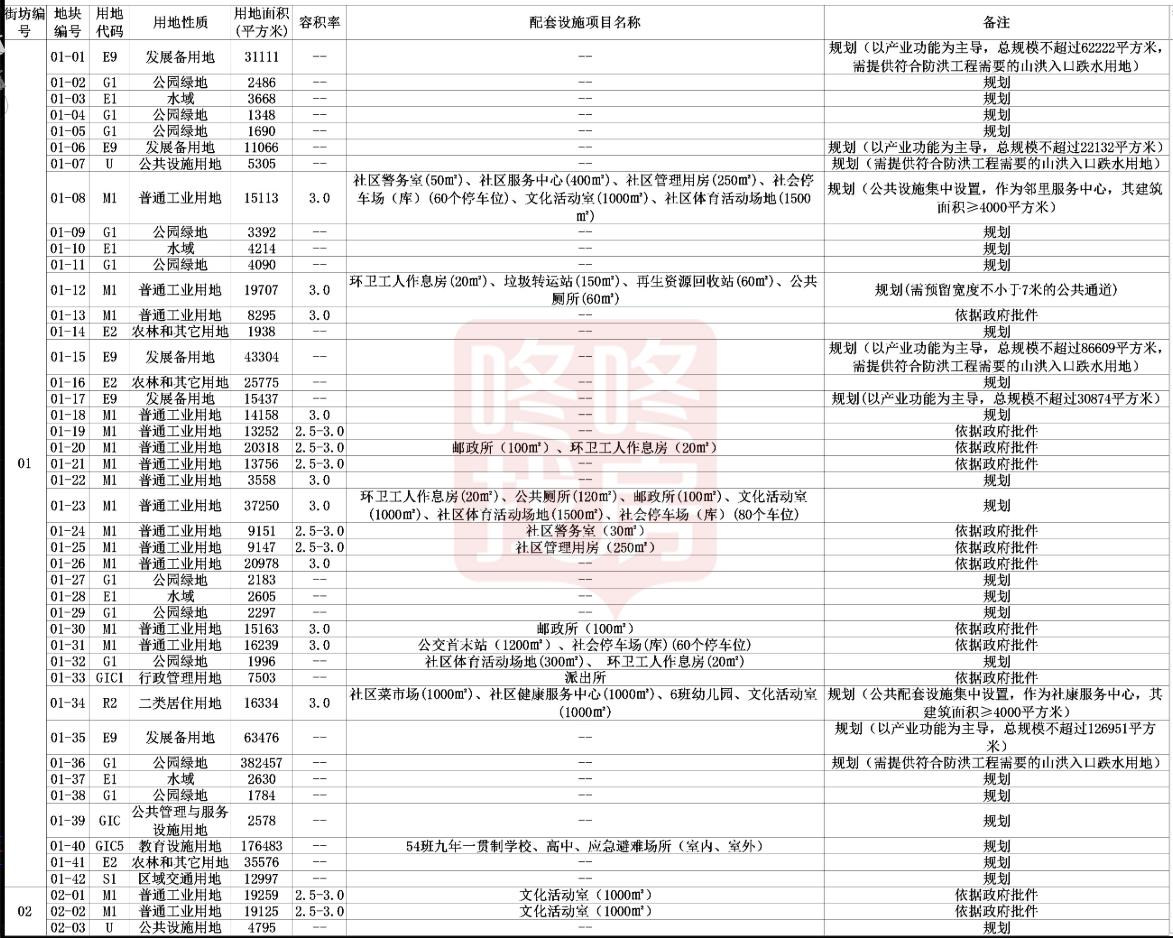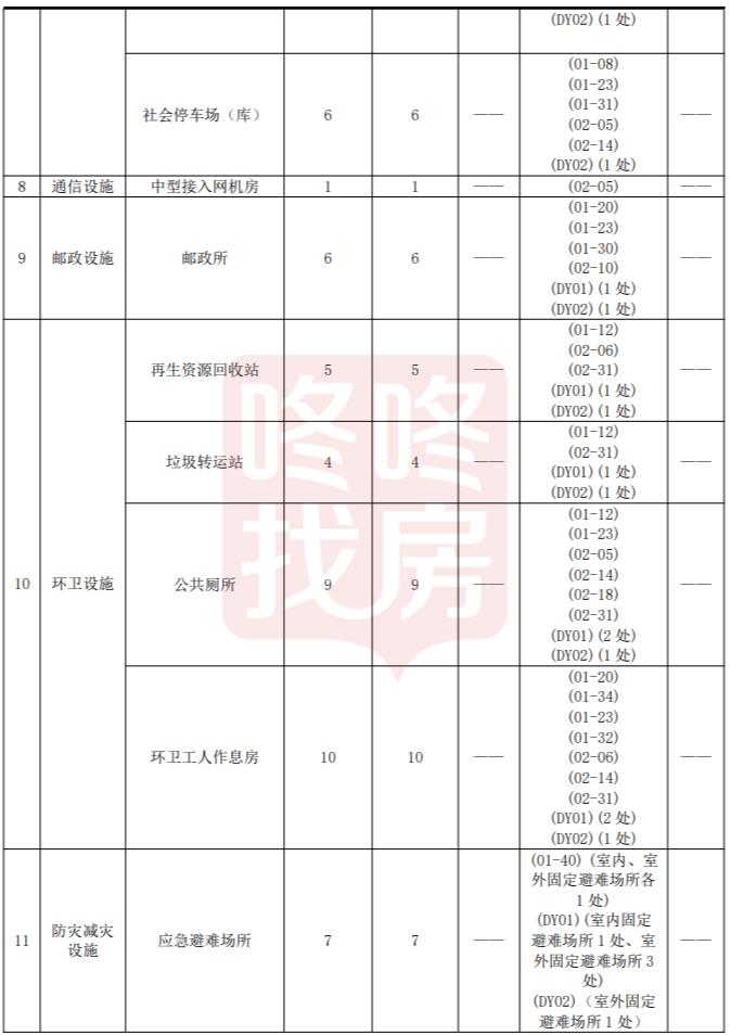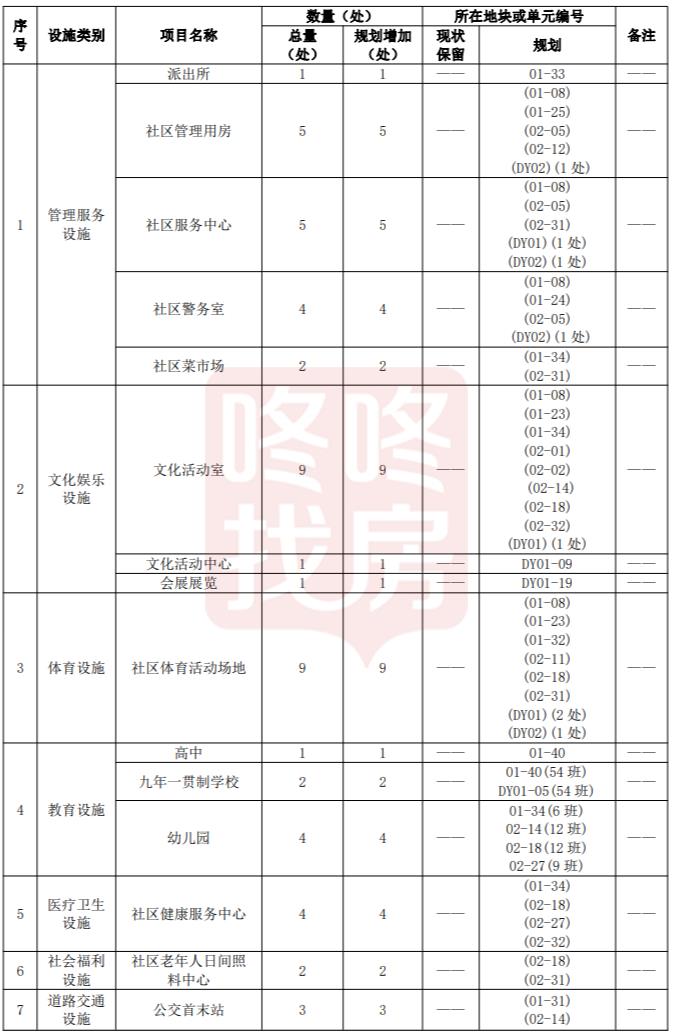 配套设施规划一览表