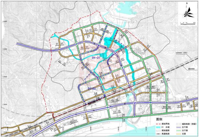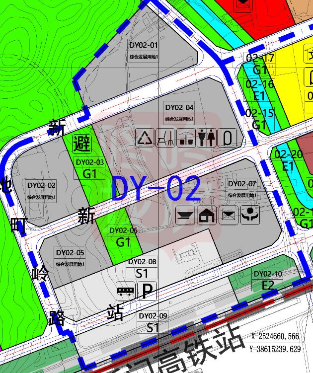 单元 02 由鲘门高铁站、主题公园、新乡路、地町岭路围合而成,包括 DY02-01~DY02-10 共 10 块地块,以居住、商业功能为主导。单元依托鲘门高铁 站进行站城一体化开发,在高铁站以北布置居住功能、商业商务、企业孵化功能, 重点布局高品质生活服务设施、商业配套设施与企业孵化中心、展示交易中心、 金融服务中心等。