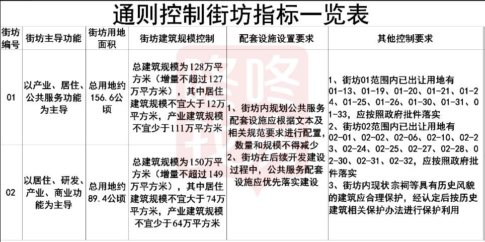 街坊 02:总用地面 积 89.4 公顷,总建筑规模为 150 万平方米(增量不超过 149 万平方米),其中居 住建筑规模不宜大于 74 万平方米,产业建筑规模不宜少于 64 万平方米。