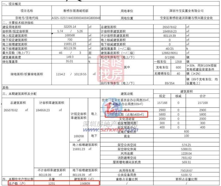 建设用地约3.2万平,容积率5.2,总建面约26.5万平,规划7栋住宅及1所幼儿园,总户数为1231户。