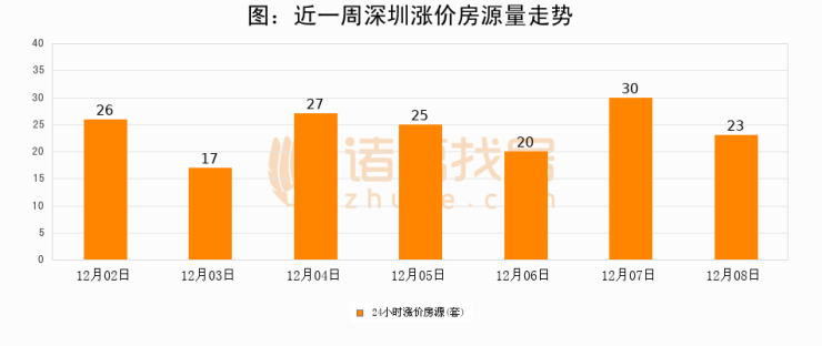 根据诸葛找房数据显示,深圳24小时涨价房源量为23套,较12月07日减少7套,环比下降23.3%。与此同时,涨价房源占比小幅回落,对于购房者来说是一个入市窗口期,购房者可抓住时机入市。
