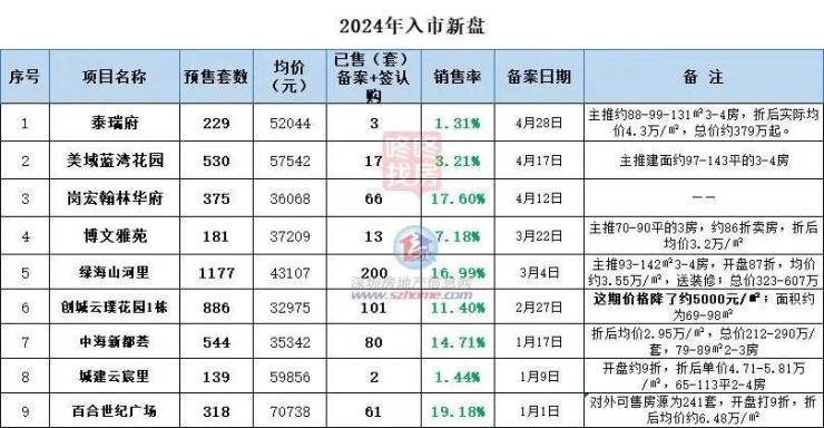 新房方面,2024年,龙岗片区到目前一共入市了约9个住宅项目,统计了下约4379套房,供应量依然不少,但今年入市的新盘,目前看备案的去化并不理想。