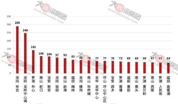 据中原统计的4月份成交TOP20片区显示,龙岗片区的布吉和龙岗中心城分别位居一二位,而且成交套数也是压倒性的领先。
