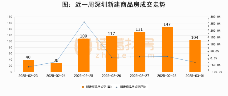 【深圳成交日报】03月01日新房成交104套、二手房96套;涨价房源1套