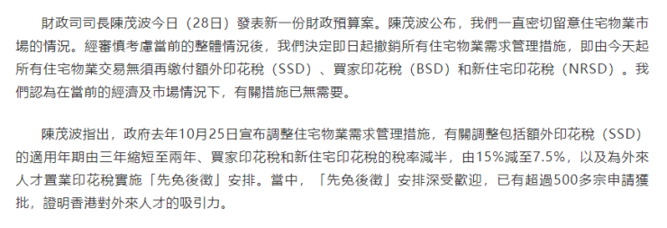 现在,全面取消住宅“印花税”,不仅香港本地居民购房成本大幅降低,非香港居民购房成本也大幅降低。
