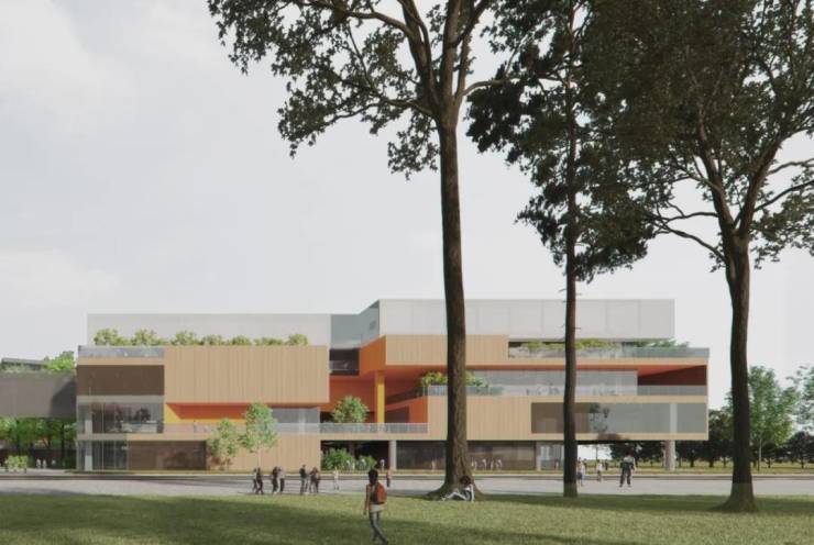 设计将食堂,报告厅,图书馆,STEAM学习中心,资源中心沿街布置,便于与社区共享,同时在沿街形成具有文化活力和社区开放的校园城市界面。