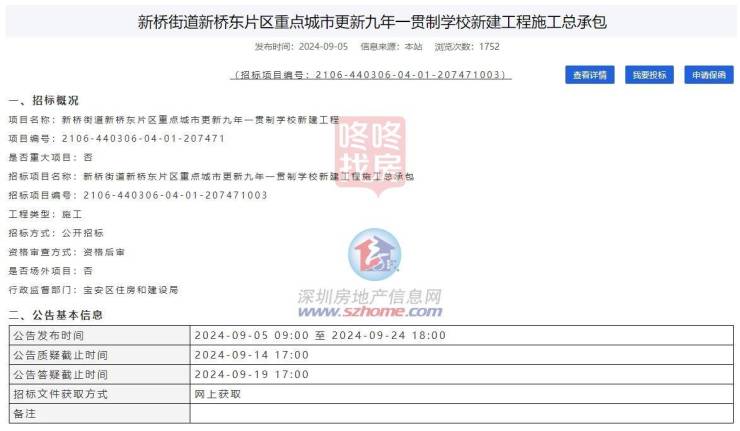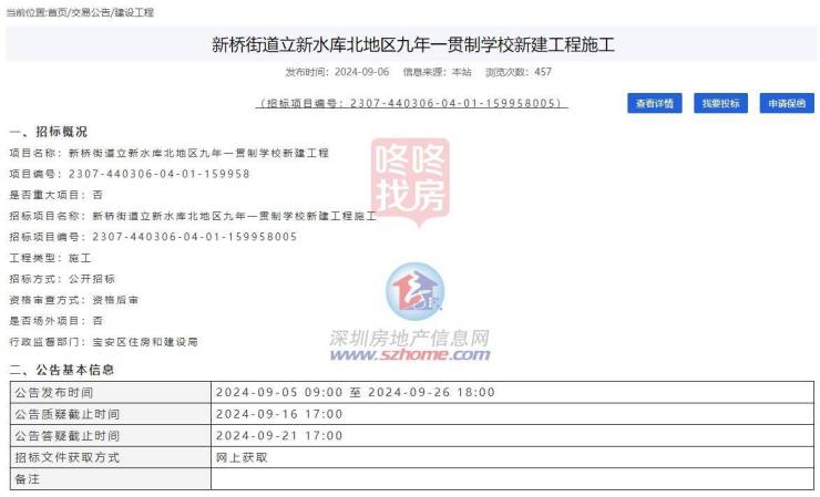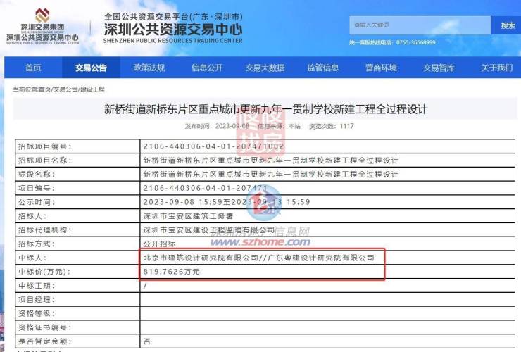 据深圳公共资源交易中心消息,位于宝安区新桥街道的2所新建学校同时启动招标,招标估价超6亿!