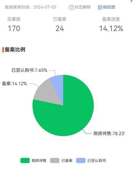 开盘一年有余,项目的整体去化偏低。其中一期入市时间在3月得益于当时市场稍回暖,去化相对不错,目前仅余3成左右房源在售;二期于9月入市,加之大户型总价高,如今开盘已10个月,备案量仍不足2成。