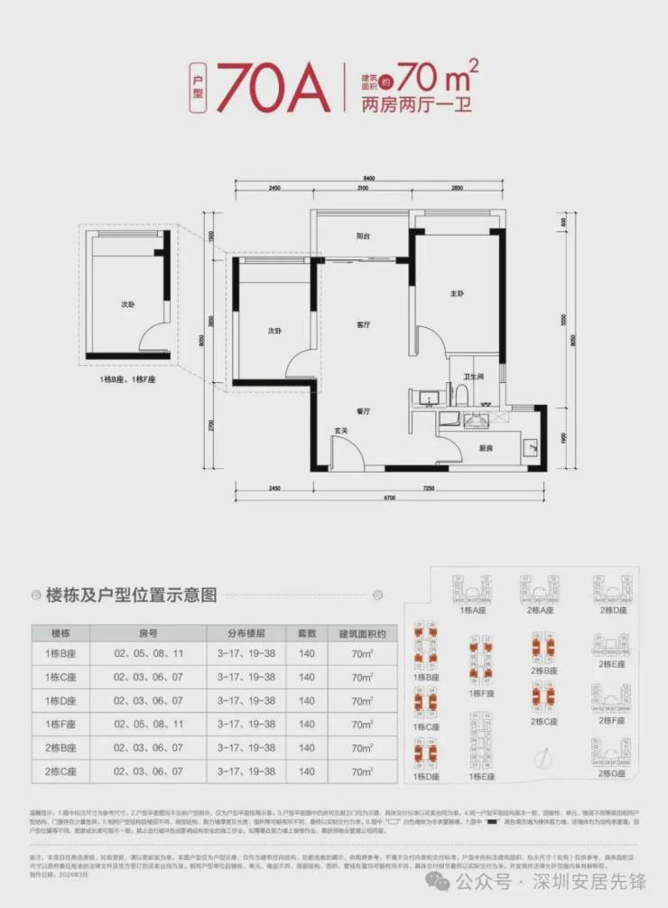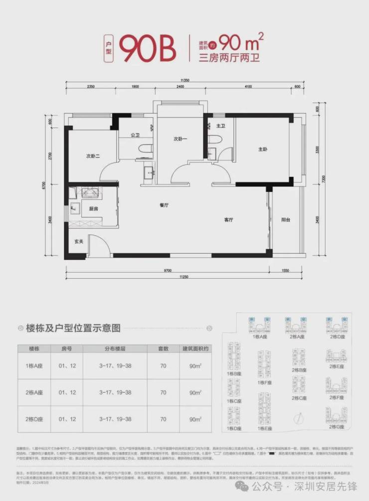 批次住房配售房源共3466套安居型商品房,其中:两房户型2629套,建筑面积约70㎡;三房户型837套(包含93套无障碍户型),建筑面积约90㎡。