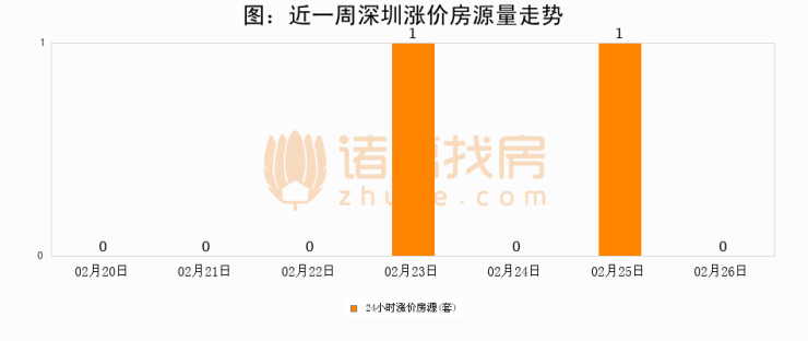 根据诸葛找房数据显示,深圳24小时涨价房源量为0套,较02月25日减少1套,环比下降100%。与此同时,涨价房源占比小幅回落,对于购房者来说是一个入市窗口期,购房者可抓住时机入市。
