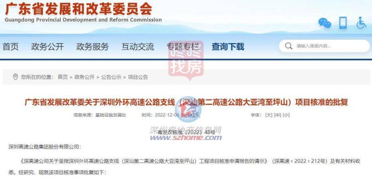 近日,广东省发展改革委批复深圳外环高速公路支线(深汕第二高速公路大亚湾至坪山)项目核准。项目总投资估算77.29亿元(含建设期贷款利息5.32亿元)。
