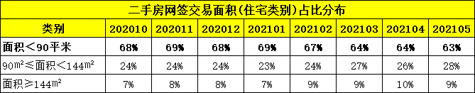 (二)二手住宅网签占比再次下跌,且大户型占比持续升高