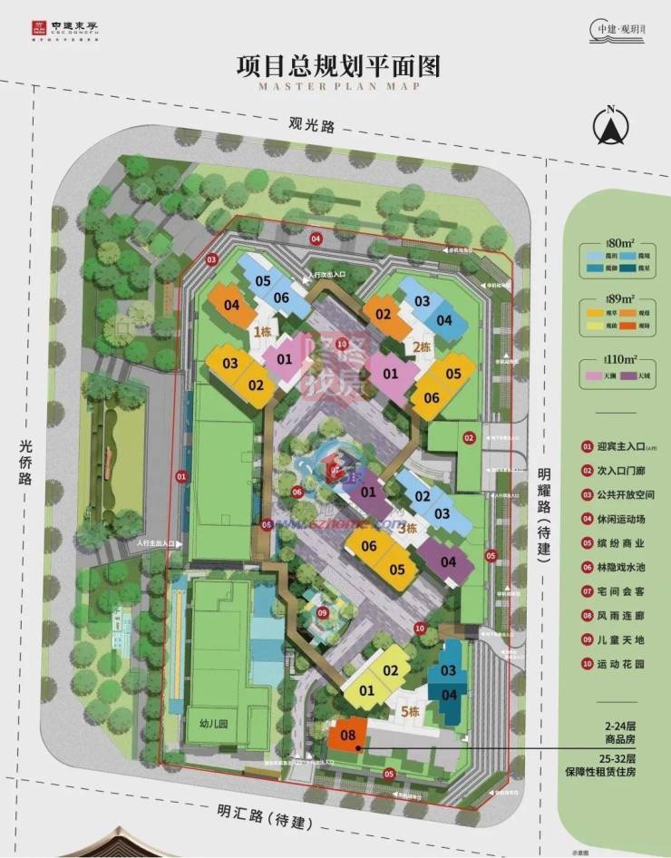 占地约1.4万㎡,建筑面积约11.5万㎡,绿化率为35.1%,容积率5.4。共有5栋建筑,总可售户数为719户,其中1,2,3栋为33层,4栋为3层幼儿园,5栋为32层,是片区内少见的高层建筑,低容积率。