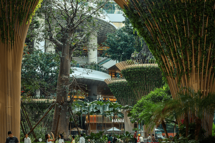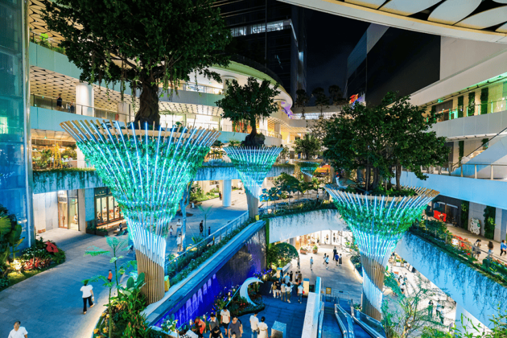 也因此,越来越多商业通过与生态融合满足人们的松弛感生活方式。如:把森林和瀑布搬进城市的新加坡樟宜机场、开在山谷里的泰国Mega Bangna、可以漫步自然的台湾PARK2草悟广场……这些爆红的绿色商业都反映出“商业+生态”模式已经成为消费新风尚。