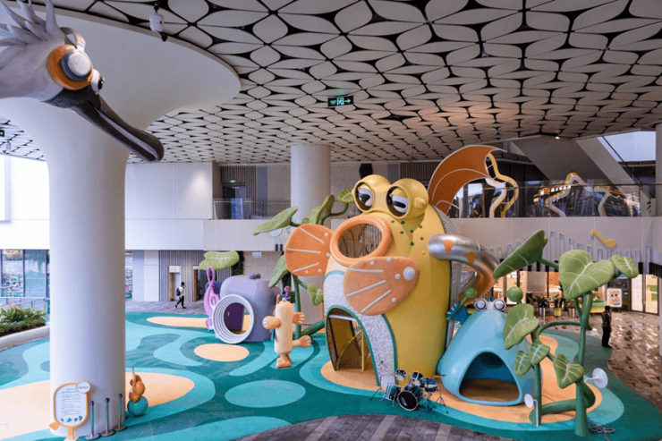 ◎迁徙乐园:近 1200M² 、9米挑高的儿童游乐空间,以深圳十大动物之一弹涂鱼为创造原型,结合寓教于乐的设计理念构建了一个亲子活动主场。