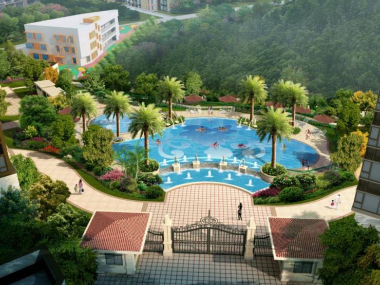 规划的泳池,按成人、儿童分区设置。当然,泳池经疫情以来,利用率比以往都要低,管理得好是社区的加分项,管理不好,实际占用了社区休闲空间,且对高层俯瞰社区园林的景观效果带来负面影响。