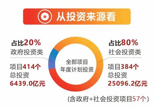 从投资来源看,政府投资类项目414个,总投资6439.0亿元,占比20%。