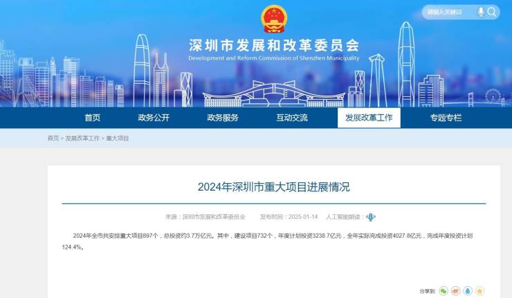 2月25日,深圳市发展改革委对外发布深圳市2025年重大项目计划草案。