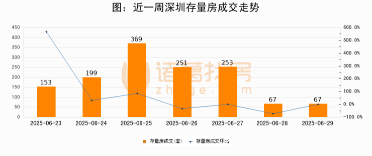 从存量房来看,2025年06月29日深圳存量房单日成交67套,比昨日持平。。从近一周存量房成交来看,深圳存量房日均成交套数为194套,06月29日单日成交67套,低于近一周平均水平65.5%。