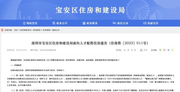 深圳市宝安区住房和建设局根据公证摇号确定的选房顺序号及高层次人才所持高层次人才证书发放的时间顺序或认购编号先后顺序、高精尖缺人才的认购编号先后顺序,确定本批次住房终审合格认购申请家庭的选房顺序及选房名单,并在深圳市宝安政府在线网站发布本批次住房的选房通告及选房名单、选房顺序。