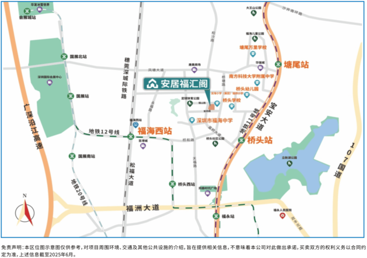 距地铁11号线桥头站约900米,距地铁12号线桥头西站约1.4公里,享高效通勤圈。临富桥大道、宝安大道、福洲大道等宝安主干道;驾车约19公里宝安中心,约25公里南山中心,约36公里福田中心。(以上距离来源百度地图,具体以实际为准)