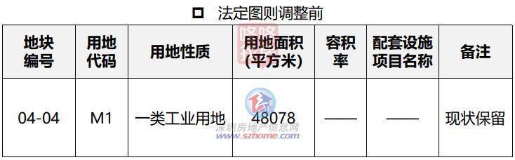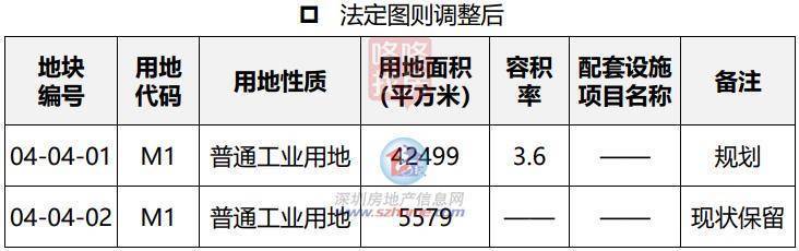 04-04-01地块用地性质为“普通工业用地(M1)”,用地面积为42499平方米,容积率为“3.6”,配套设施项目名称为“—”,备注为“规划”。