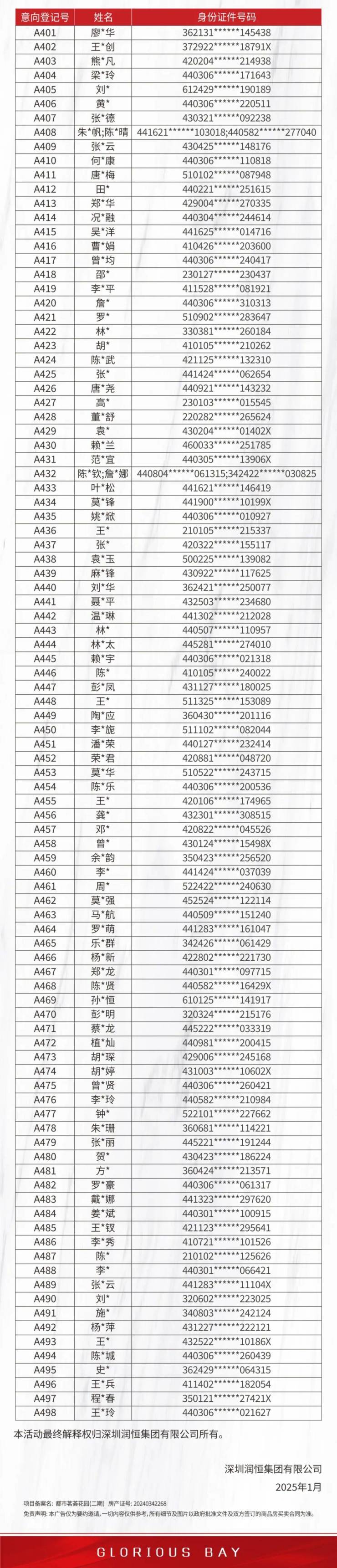 宝中都市茗荟花园二期首批意向登记人名册公示,入围客户498批,本次推售272套房源,入围比约1:1.83。(后附登记人名册)