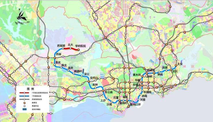 预计2025年建成后,7号线东延(二期)将串联起深港合作区与西丽湖国际科教城,未来不仅能有效增强南山区内部联系,还将支持综合性国家科学中心的建设,补充原区域内的轨道网络覆盖,深大总医院片区出行,也将更高效便捷~