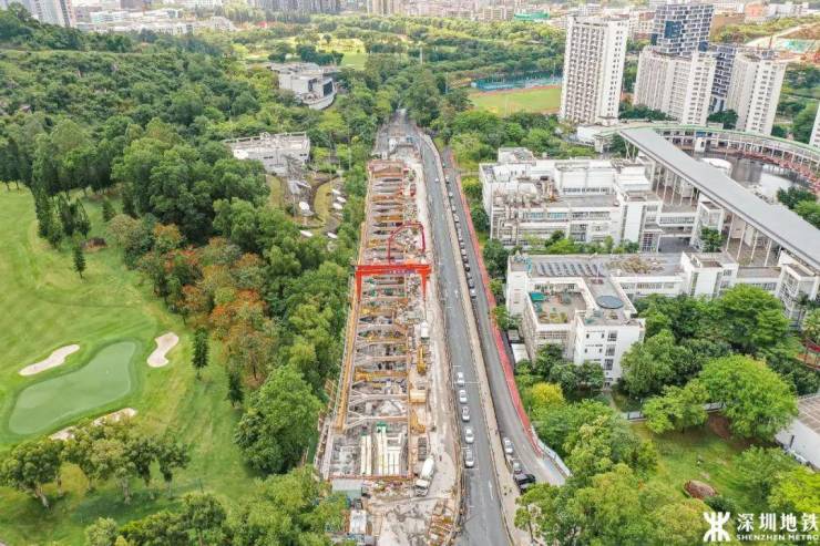 学北区间左线长818.41米,右线长809.822米。盾构机从学府医院站小净距钢套筒分体始发后,需下穿雨水箱涵,穿越西丽高尔夫球场地块及其2处人工湖,并沿丽水路一路掘进最终到达北大站。