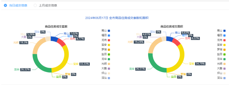 2024年6月17日新房住宅共网签57套。宝安19套;福田0套;龙岗5套;罗湖0套;南山4套;盐田0套;龙华15套;坪山3套;光明11套;大鹏0套;深汕0套。